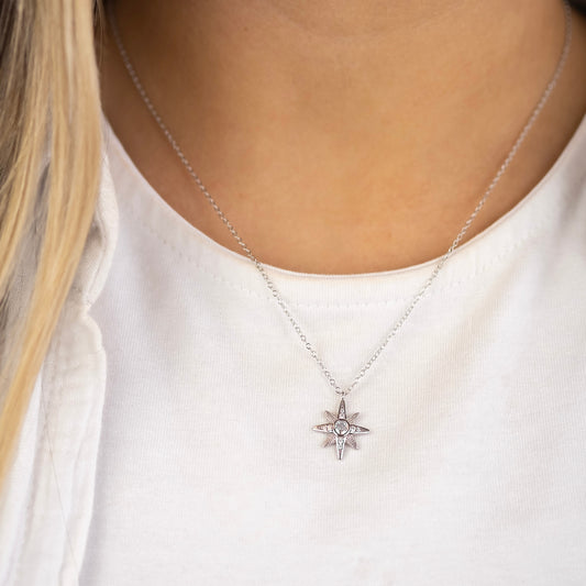 Halskette 925er Silber Windrose Perlmutt Weiß