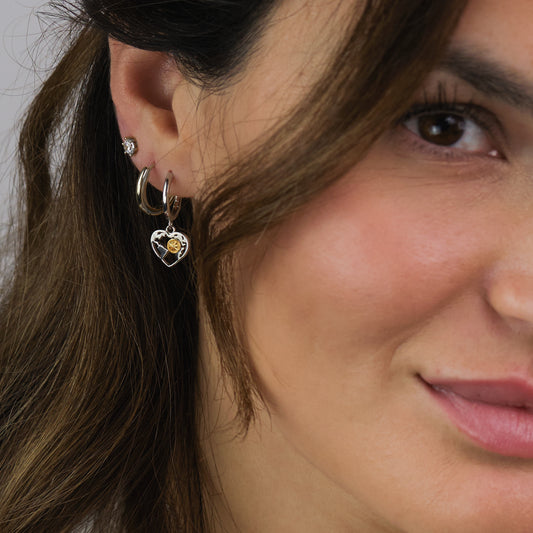 Kombiniere Herzen, Flügel, Sterne, die Hand der Fatima oder kleine Engelsrufer Charms mit angesagten Creolen, um ein individuelles Schmuckstück zu kreieren. Die Charm-Anhänger mit verschiedenen Symbolen und Farben lassen sich ganz einfach an die passenden Creolen clippen und so nach Belieben angepasst werden. Mixe Silber, Gold oder Rosé für ein Statement mit extravagantem, filigranem oder minimalistischen Ohrschmuck.