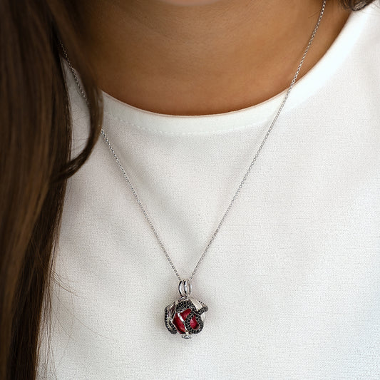 Halskette 925er Silber Eden mit Klangkugel Rot und Zirkonia Größe XS