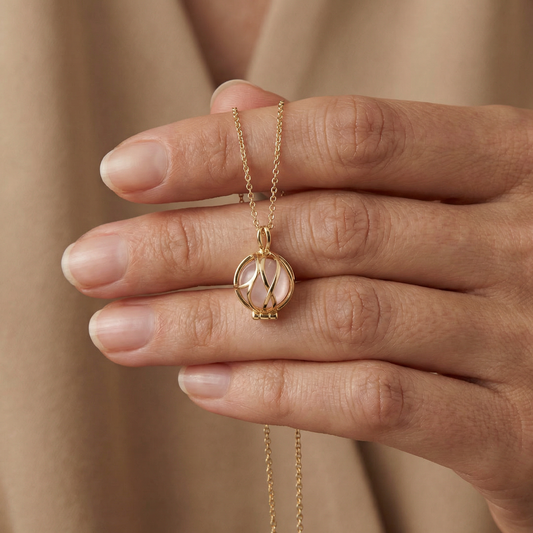 Halskette 925er Silber Paradise Gold mit Kraftstein Rosenquarz