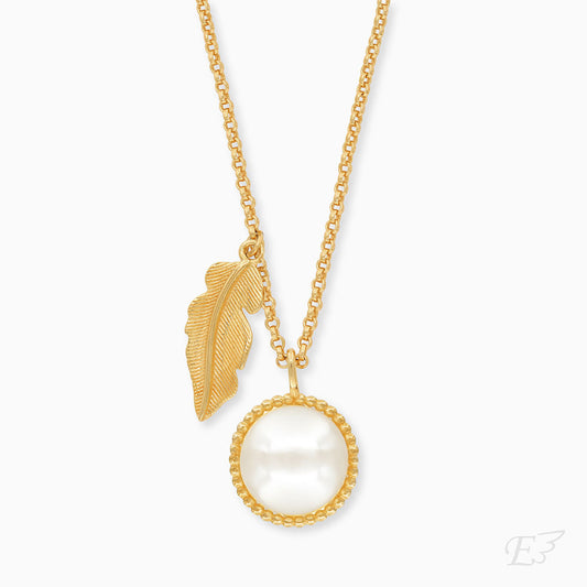Ohrstecker 925er Silber Gold Feder mit Muschlekernperle