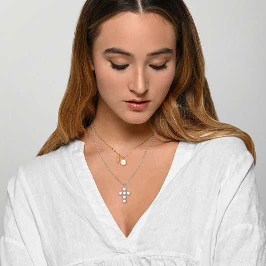 Charm 925er Silber Kreuz Gold mit Zirkonia