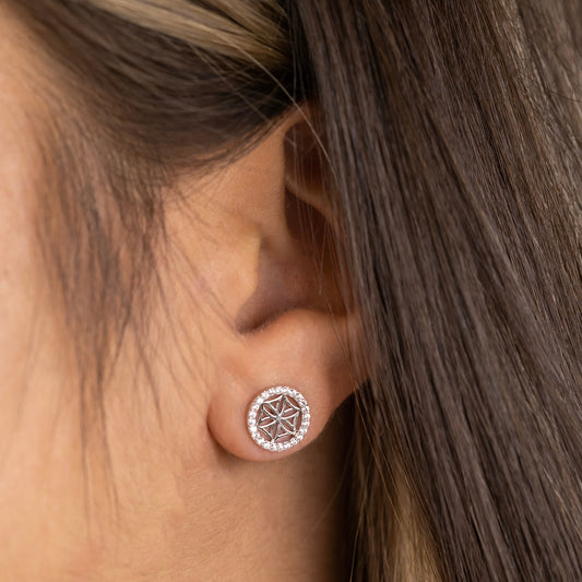 Ohrstecker 925er Silber Kompass Windrose mit Zirkonia