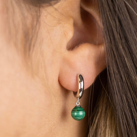 Engelsrufer women's hoop earrings silver with a malachite pearl