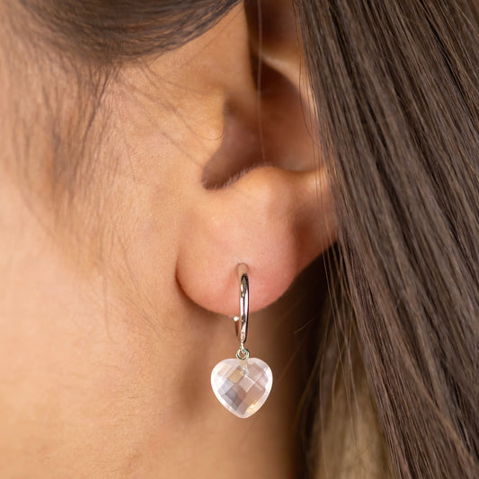 Engelsrufer women's silver hoop earrings heart with rose quartz