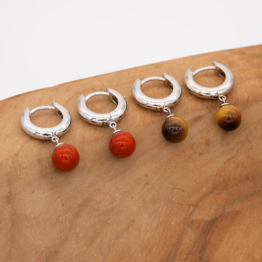 Engelsrufer women's silver hoop earrings with red jasper pearl