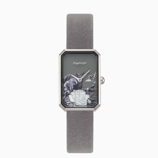 Engelsrufer Flower of Life black watch with stainless steel silver bracelet