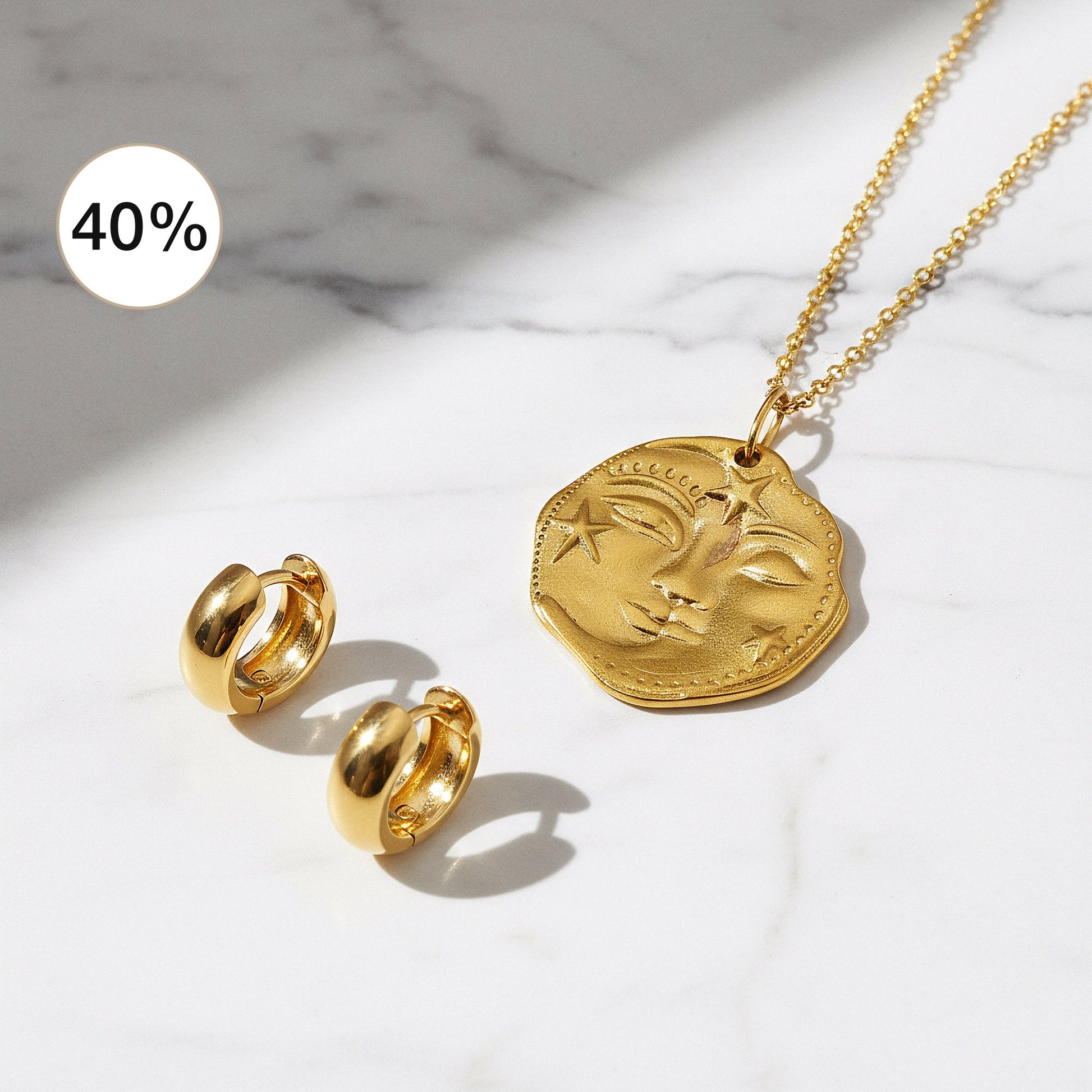 2er Schmuckset 925er Silber Halskette Creolen Gold