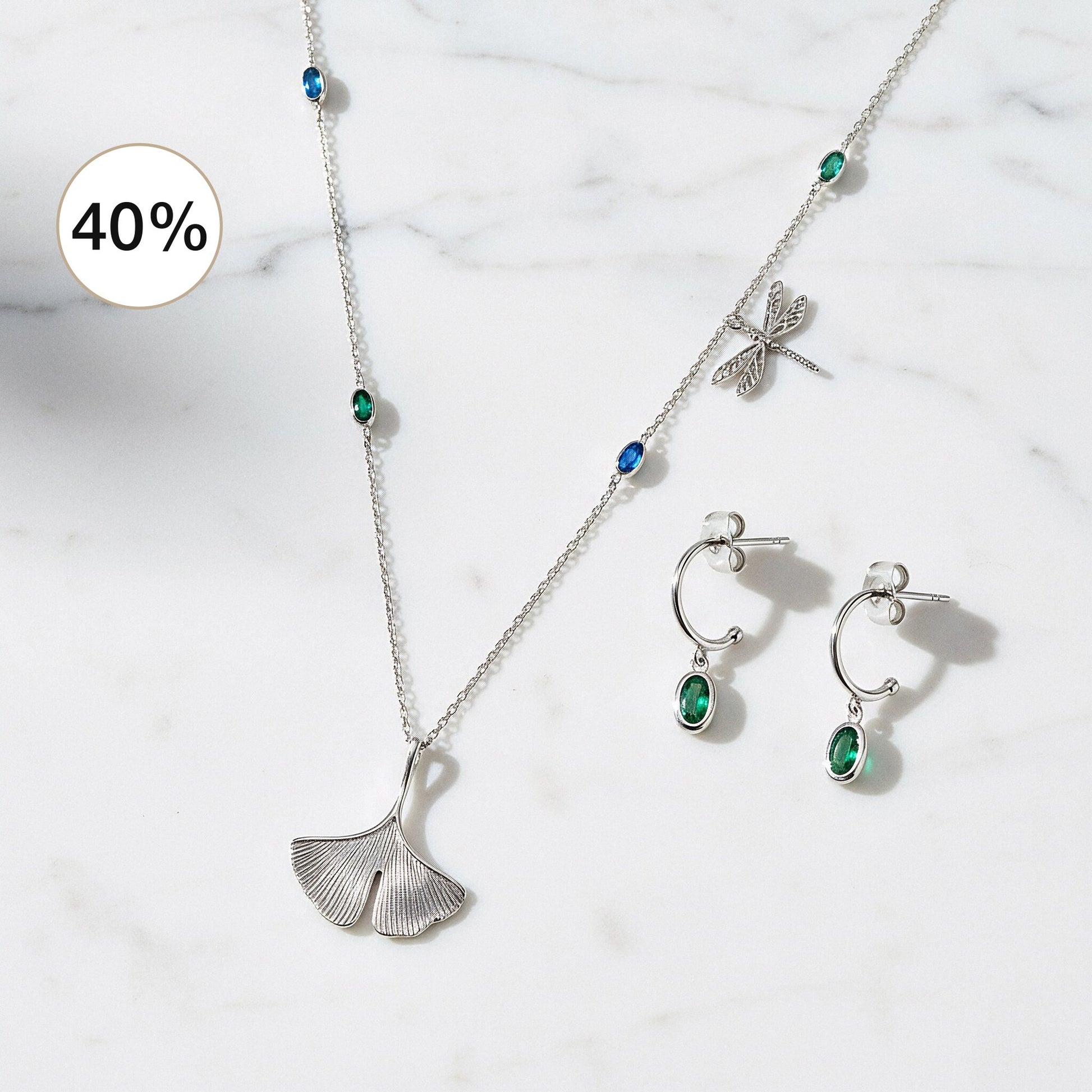 2er Schmuckset 925er Silber Halskette Creolen Joy Nature