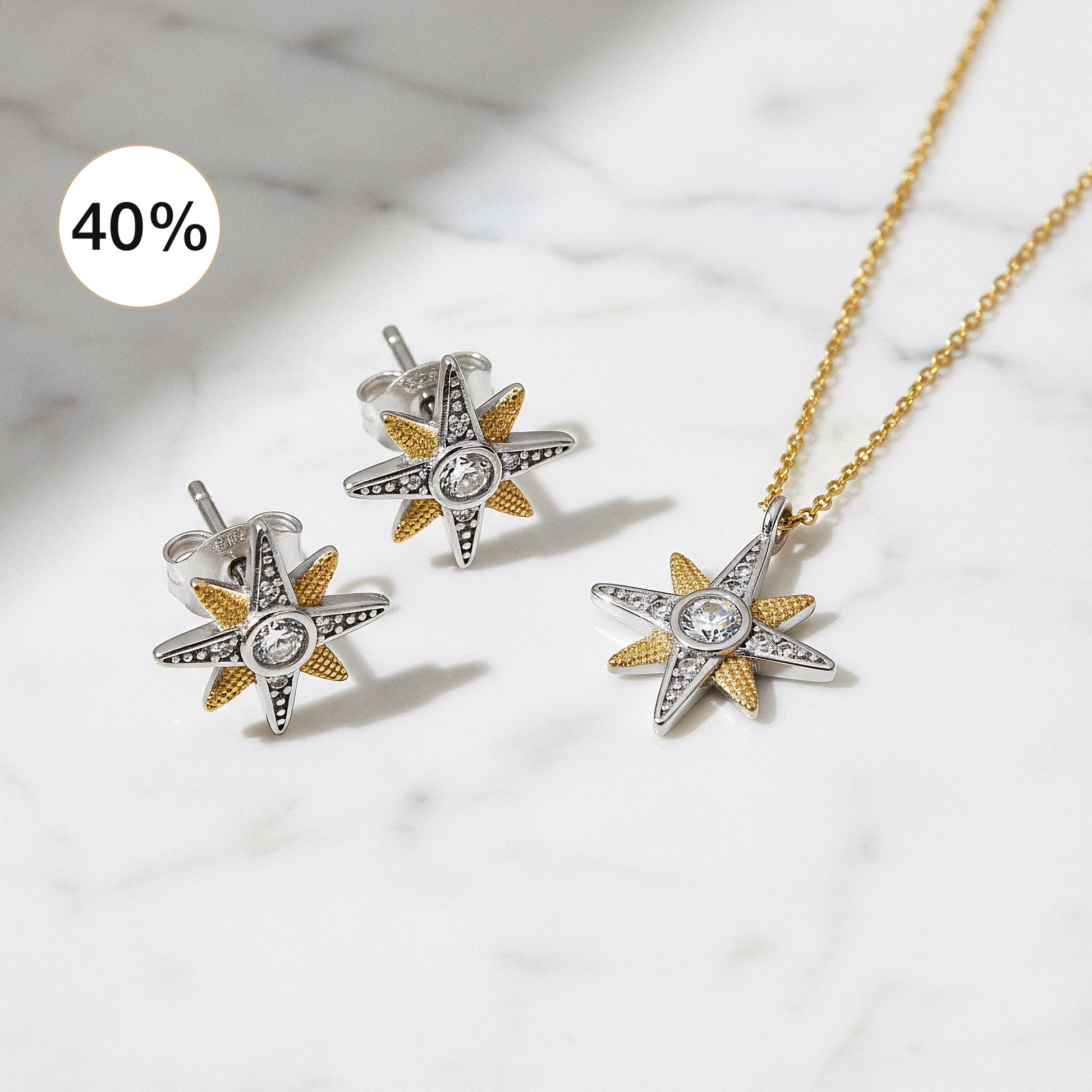 2er Schmuckset 925er Silber Halskette Creolen Newstar Gold