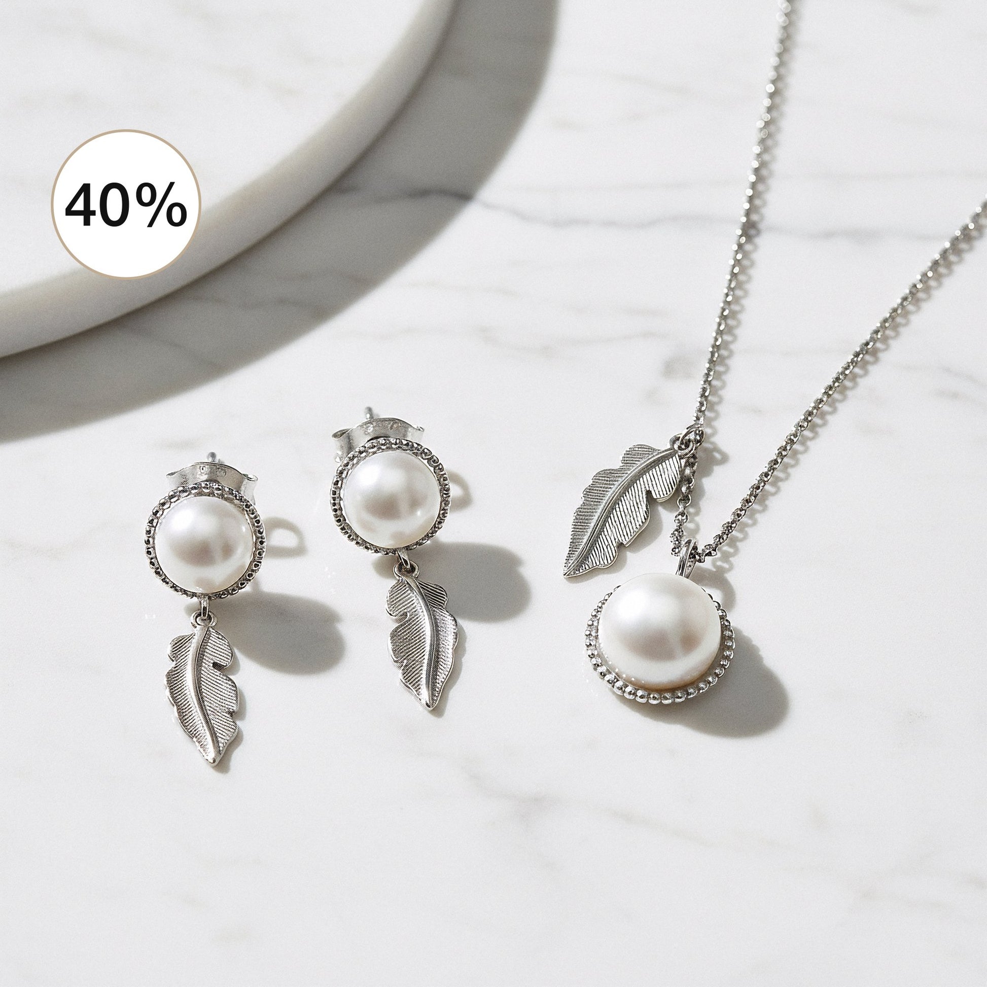 2er Schmuckset 925er Silber Halskette Ohrstecker mit Muschelkernperlen