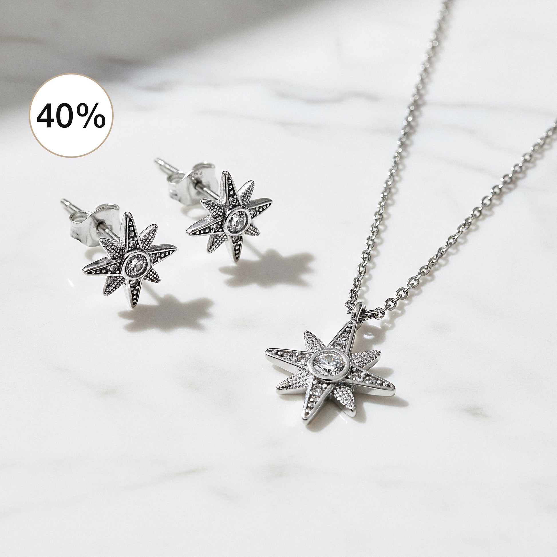 2er Schmuckset 925er Silber Halskette Ohrstecker Newstar