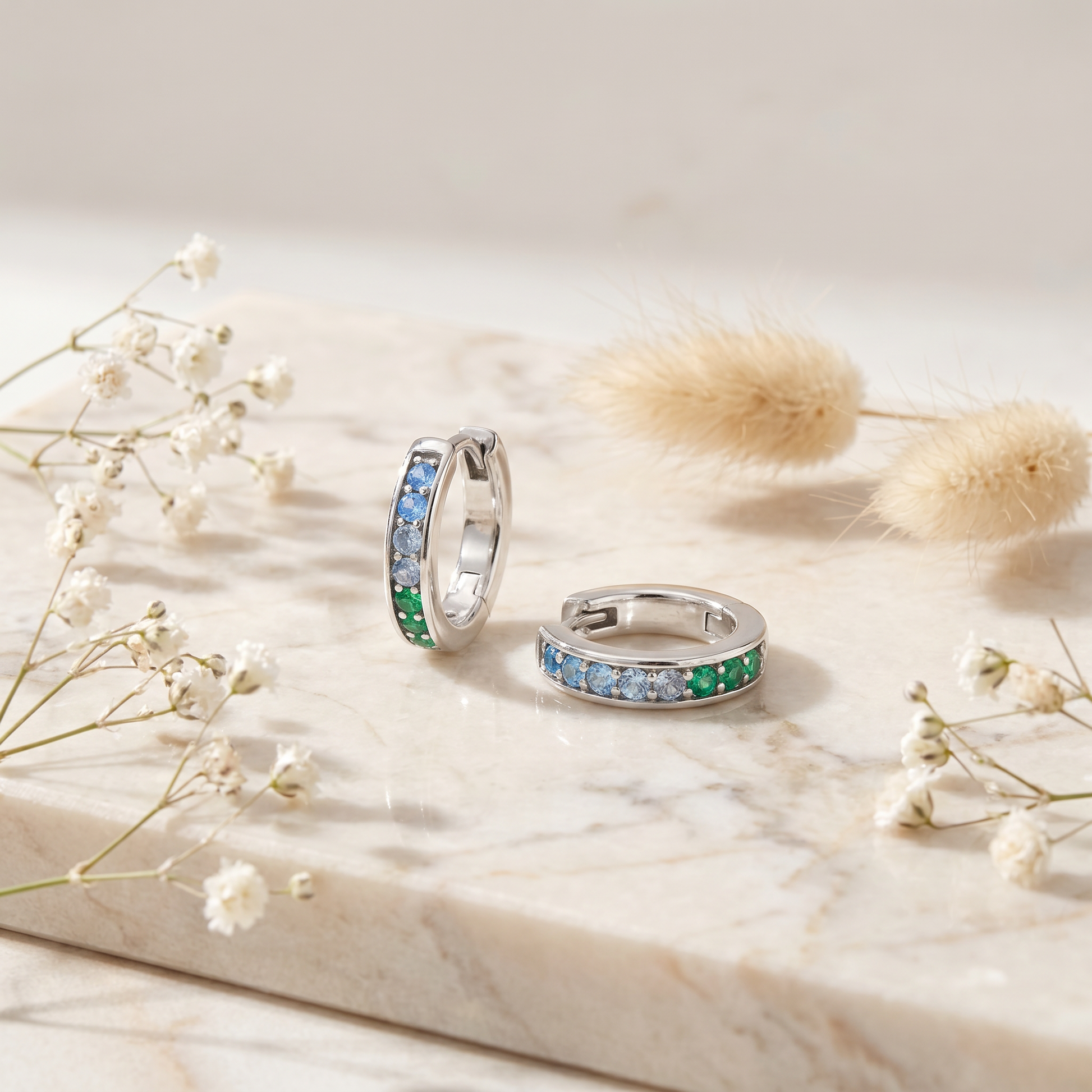 - Hoop earrings with multicolor synthetic zirconia stones
