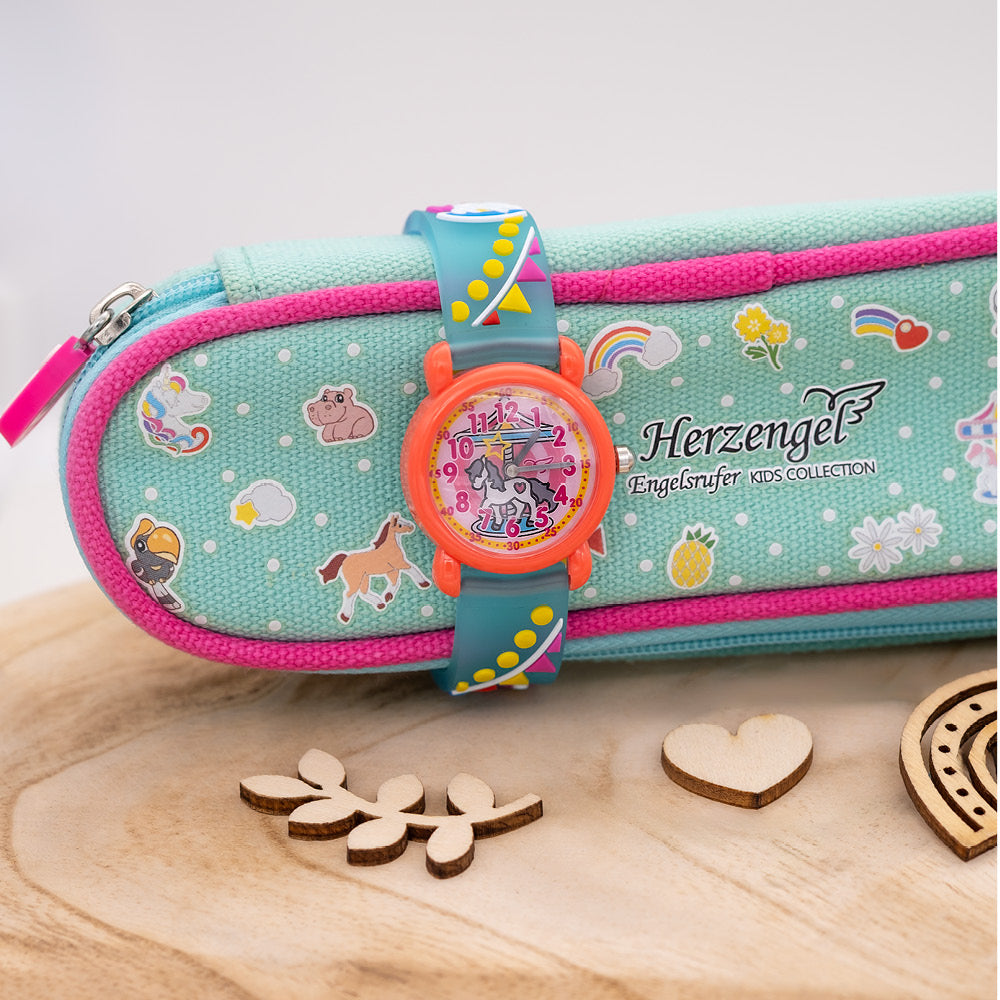 Engelsrufer analogue children's clock carrousel, carousel horse, garland including pencil case