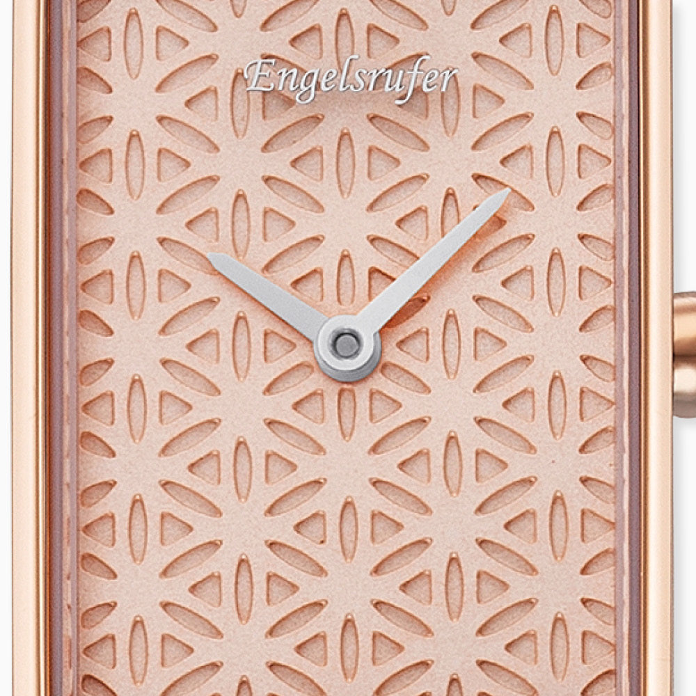 Flower of Life - our flower of life watch with a rectangular case, 2-hand movement and a high-quality strap made of genuine Italian nubuck leather, enchants symbolically with beautiful accents. The band is individually adjustable and can be set to a minimum of 16 cm and a maximum of 21 cm circumference. The combination of gray and rose gold is gentle and delicate, giving hope and calming in difficult times. The finely crafted flower of life motif gives you endless strength and promotes harmony and joy of life.