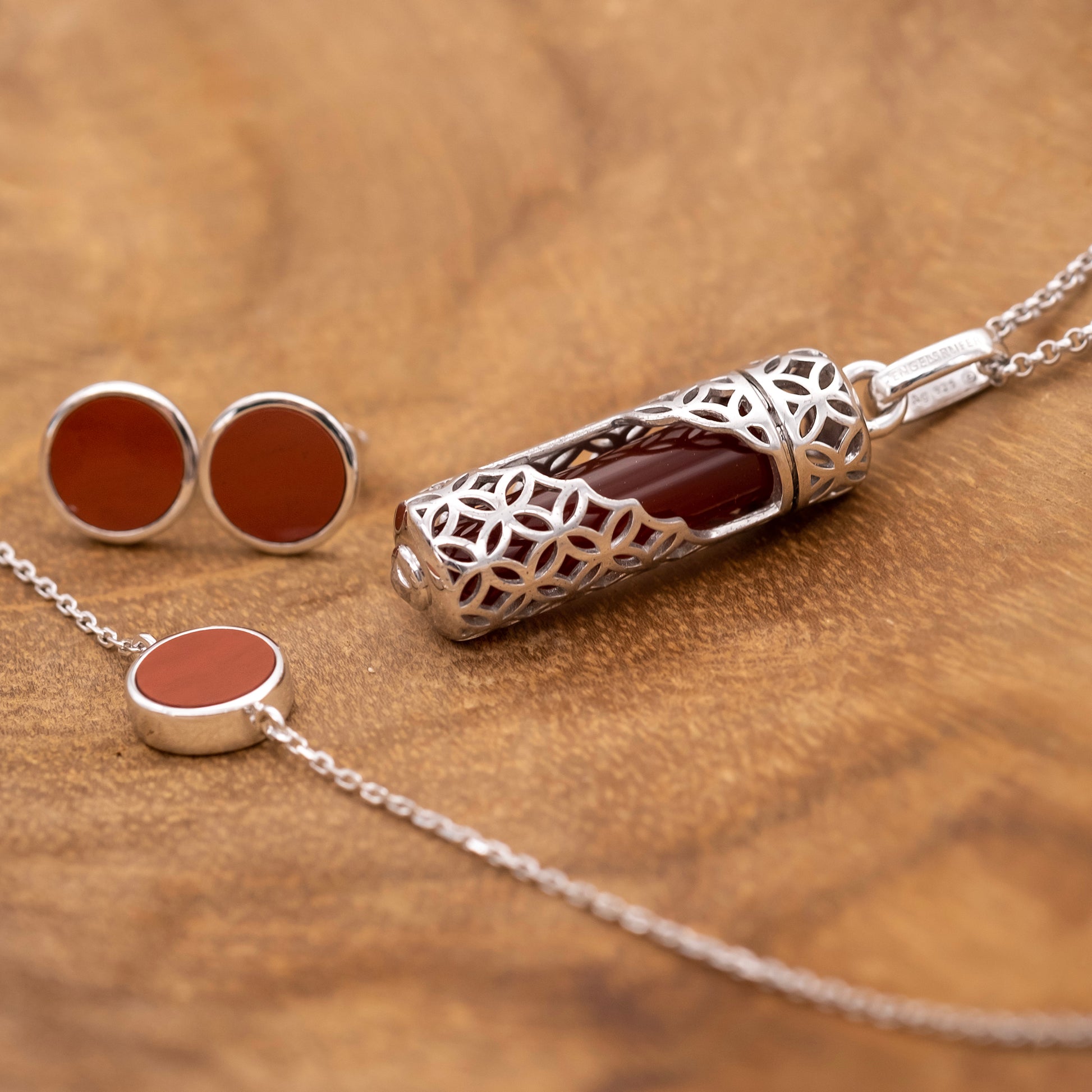 | Material | 925 sterling silver rhodium plated, red jasper |
