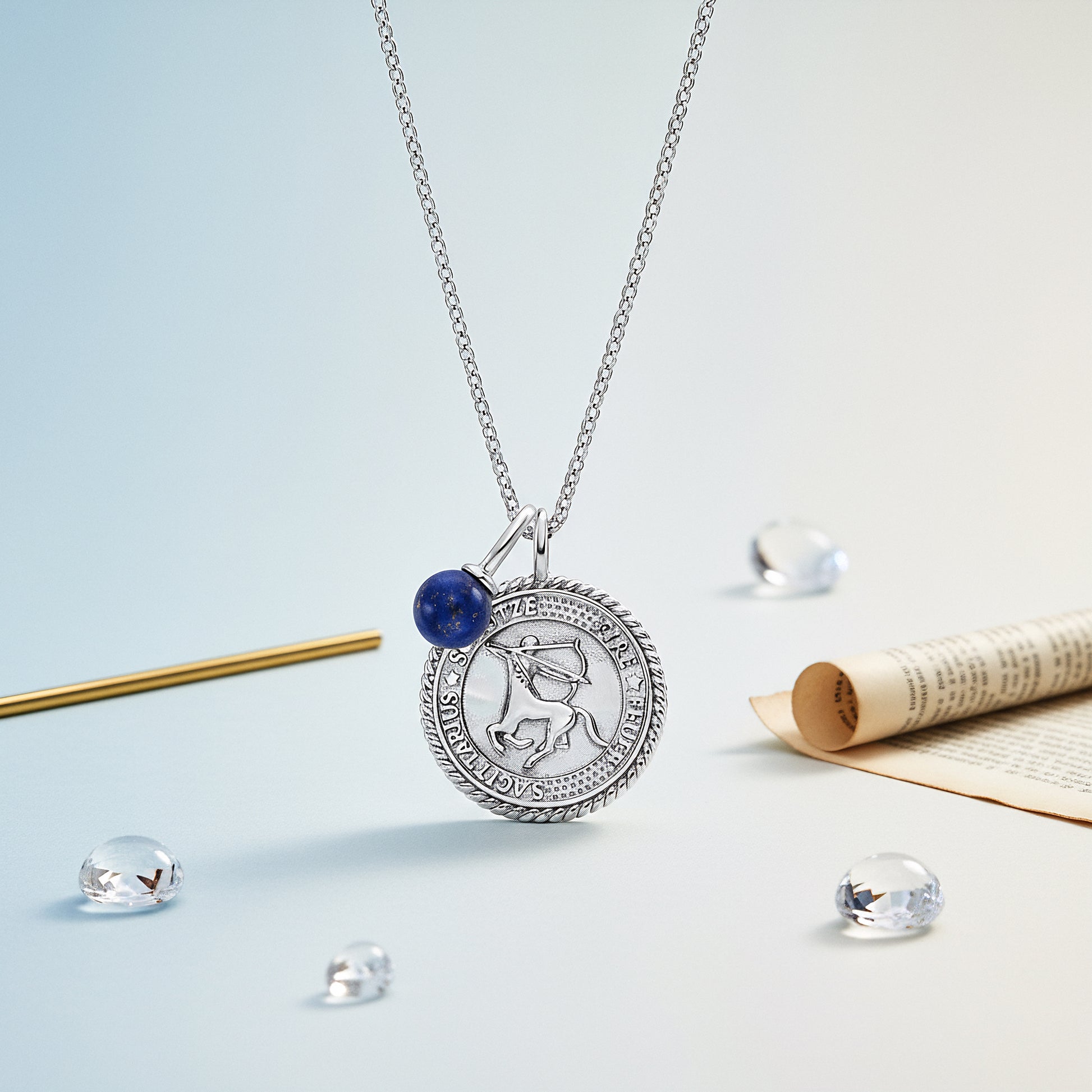 - High-quality necklace with pendant in the zodiac sign Sagittarius made of 925 sterling silver