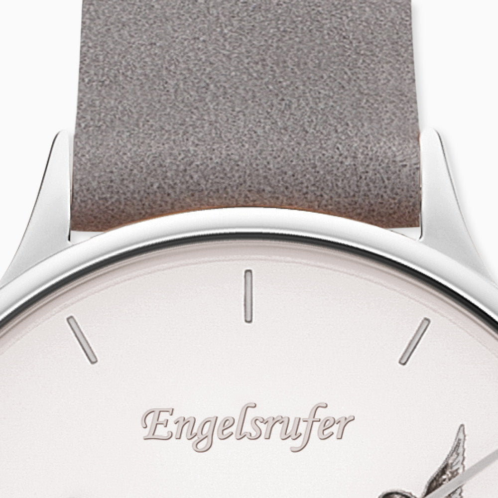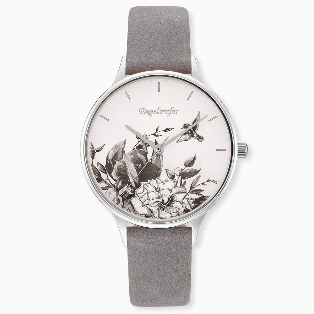 Engelsrufer women's watch analogue flower silver with gray nubuck leather strap