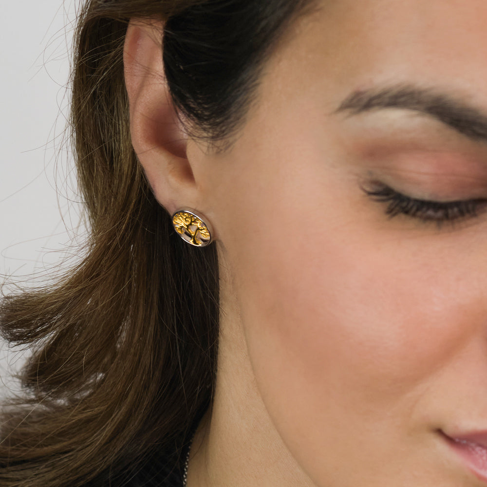 Engelsrufer women's stud earrings sterling silver bicolor with tree of life motif