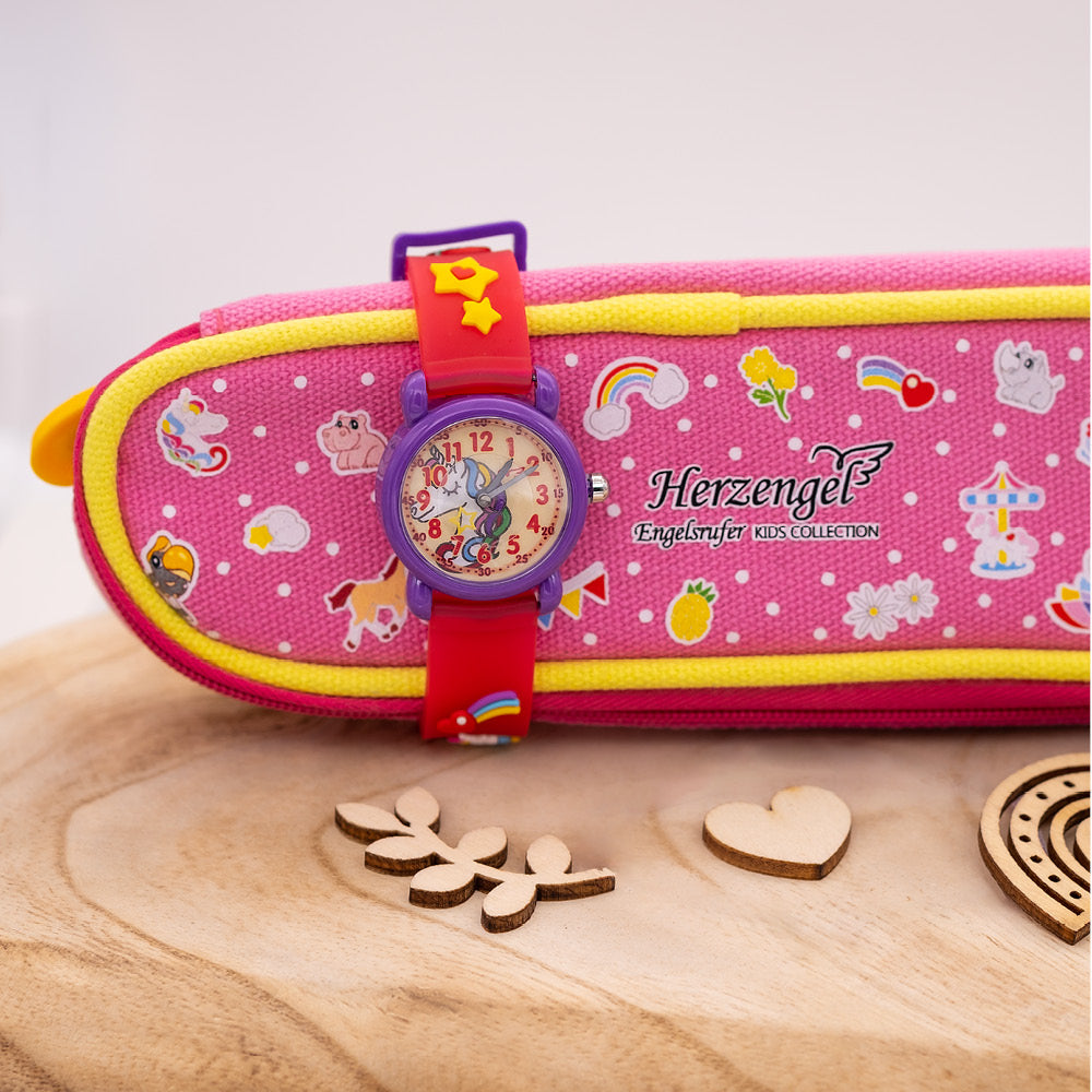 Engelsrufer girls children's watch analog unicorn, star including pencil case