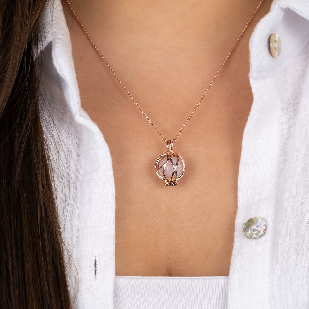 Your personal power pearl in a delicate pendant from our Powerful Stone collection. Our beautiful Engelsrufer necklace with an enchanting jewelry case as a pendant presents you with a rose quartz as a "stone of love". The power bead can be exchanged according to individual needs and desires. The rose-colored basket protectively encloses the power bead and impresses with the beautiful Paradise pattern. Power beads need the right care to ensure the stones have a long lifespan. That's why with every product from our Powerful Stone collection you get a small guideline with the most important steps for discharging, cleaning and charging. The timeless piece of jewelry is closed with a carabiner hook and is adjustable in three lengths. Engelsrufer uses the highest quality alloy 925 sterling silver for its jewelry. The rose gold coating applied as a further refinement gives the piece of jewelry its unmistakable soft color and is comfortable to wear. All pieces of jewelry are nickel-free and therefore ideal for allergy sufferers.