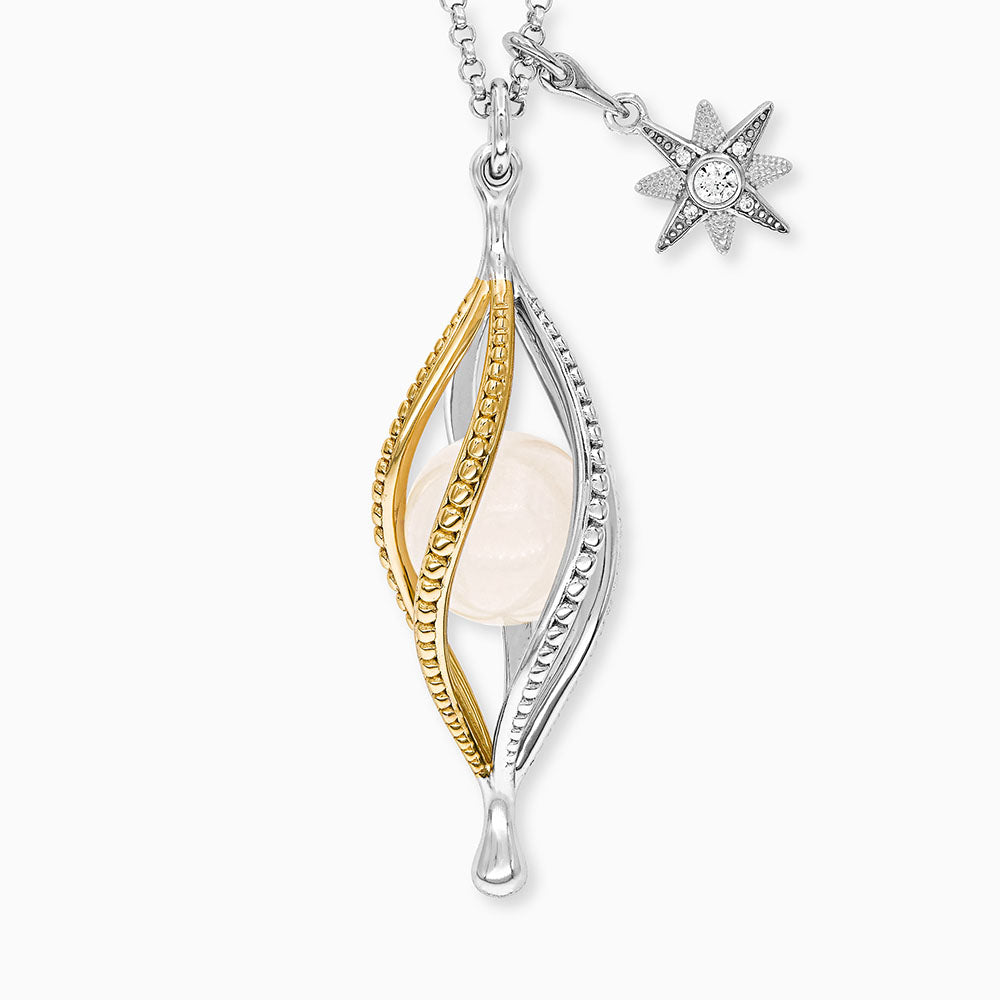 Engelsrufer rose quartz necklace women's bicolor with sun moon and star symbols
