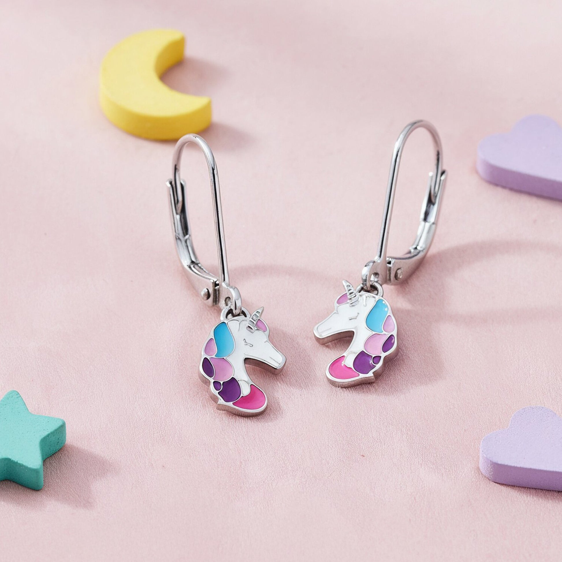 Kinder Ohrhänger Edelstahl Einhorn mit Emaille