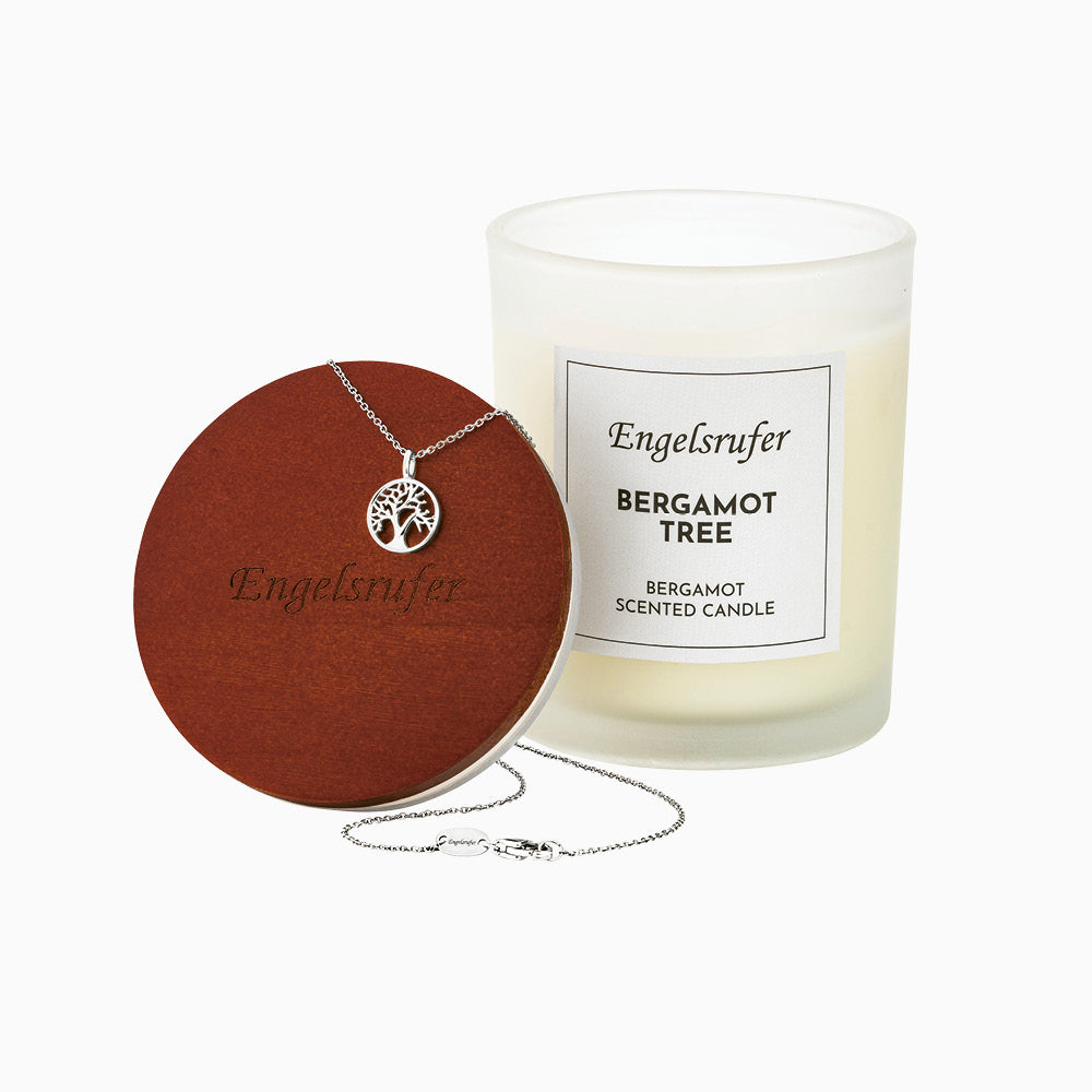 - Bergamot Tree scented candle with tree of life chain inside