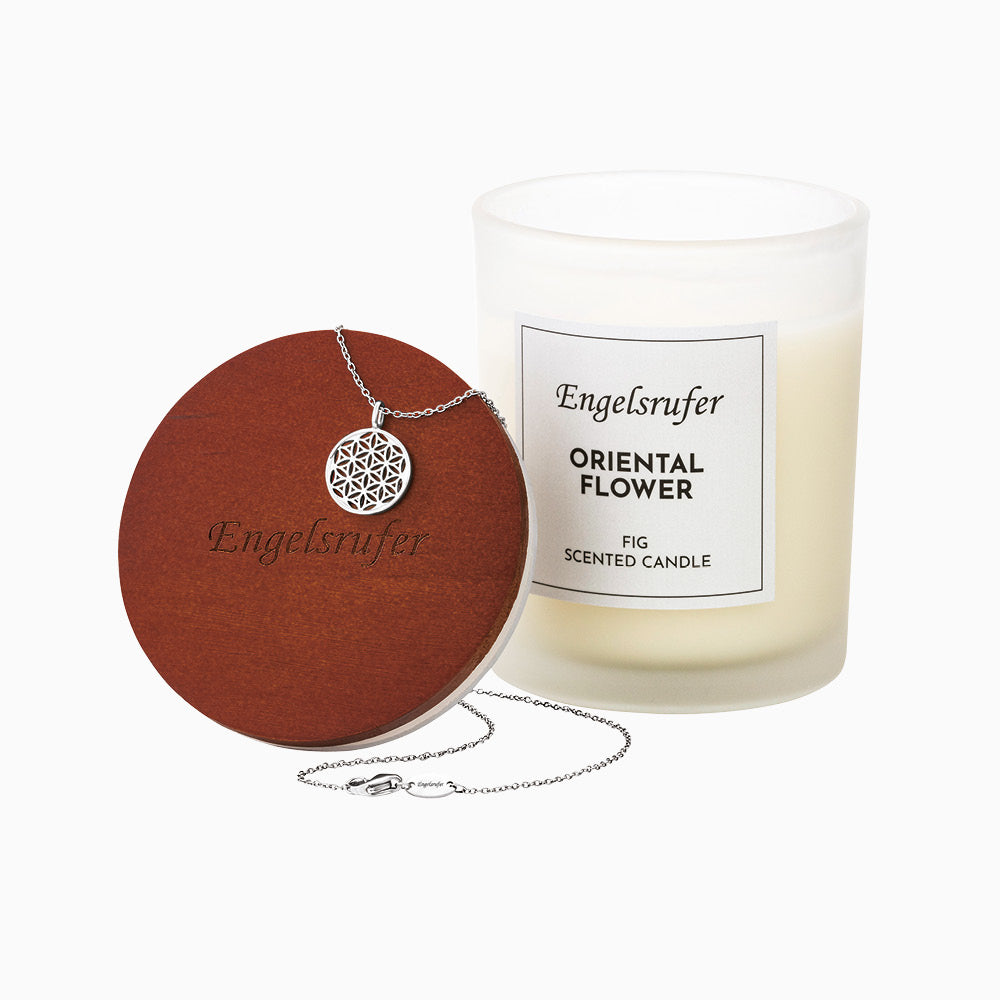 The FLOWER OF LIFE combines a magical world with the mystical scent of figs. Orientally warm and subtly sweet for dreaming, with incredibly warming depth, combined in all the splendor of radiant beauty: ORIENTAL FLOWER. Our scented candle in a magical composition with a meaningful necklace and the symbol of the flower of life, which stands for the infinite power of creation. For centuries it has promoted harmony and joy of life and at the same time brings peace and balance into your life. The timeless piece of jewelry is closed with a carabiner hook and is 45 cm long. Engelsrufer uses 100% natural soy wax and the finest essential oil with a cotton wick as the ingredients in the scented candle. After a few hours of burning, you will see your surprise in the wax of the candle in protective packaging. The chain is made of high-quality stainless steel. All pieces of jewelry are nickel-free and therefore ideal for allergy sufferers.