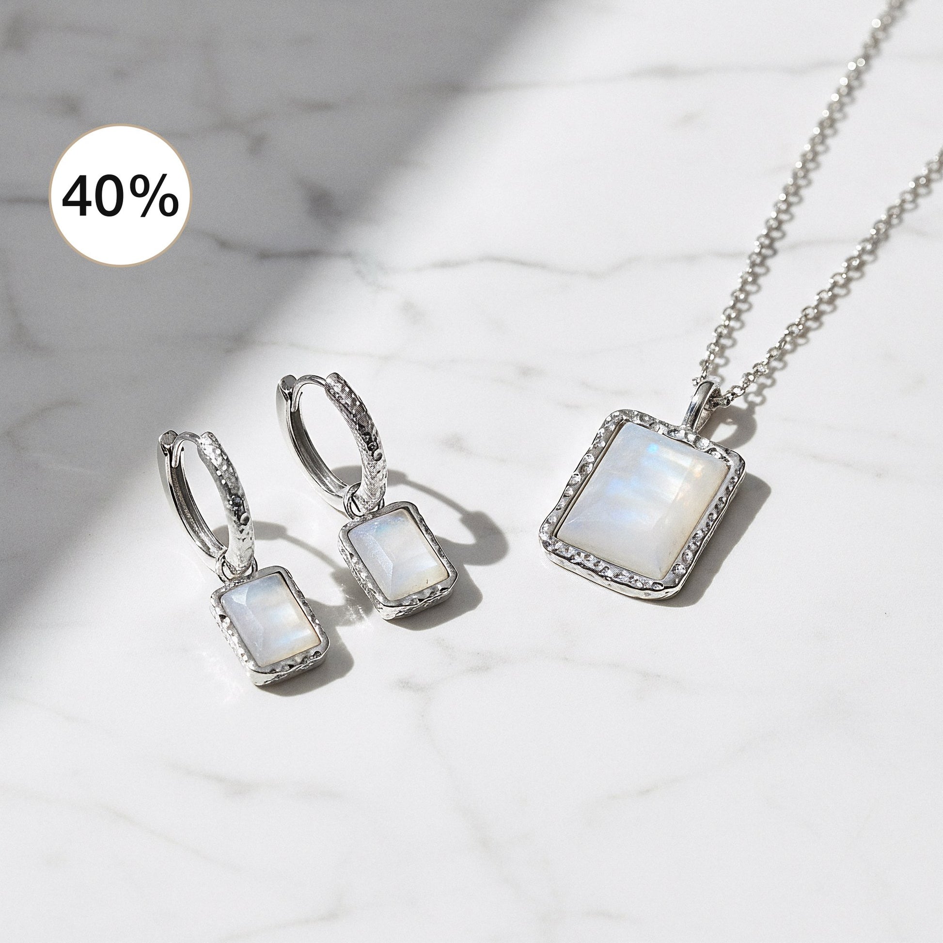 2er Schmuckset 925er Silber Halskette Creolen Pure Moon