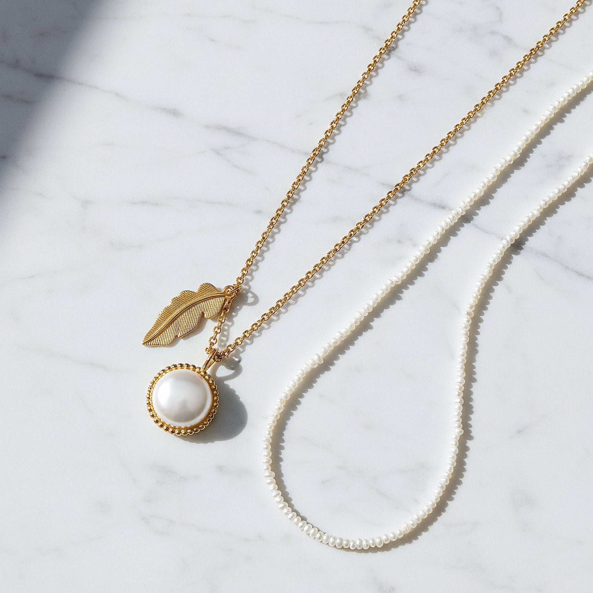 2er Schmuckset 925er Silber Halsketten Perlen und Feder