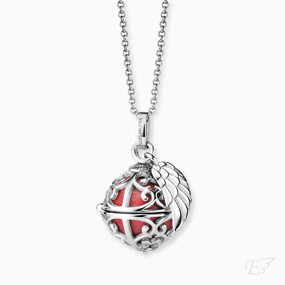 Halskette 925er Silber Engelsrufer mit Klangkugel Rot Größe XS