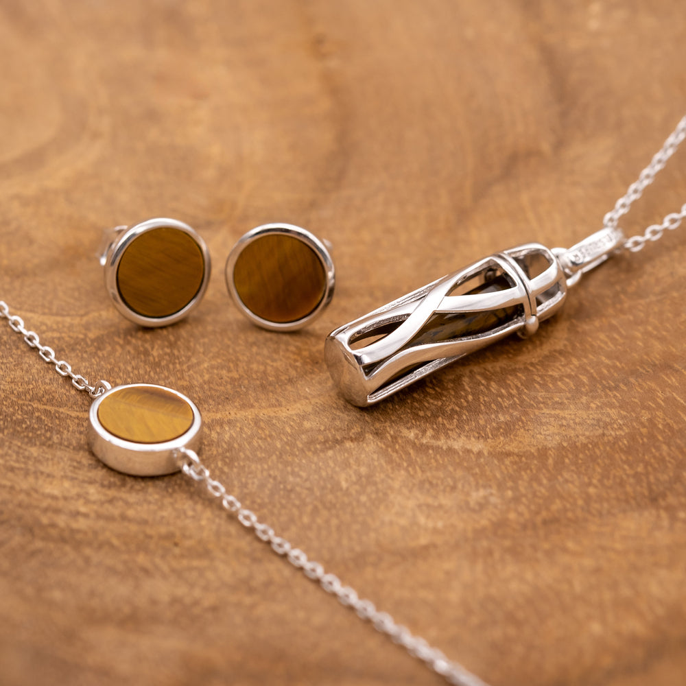 | Material | 925er Sterlingsilber rhodiniert, Tigerauge |