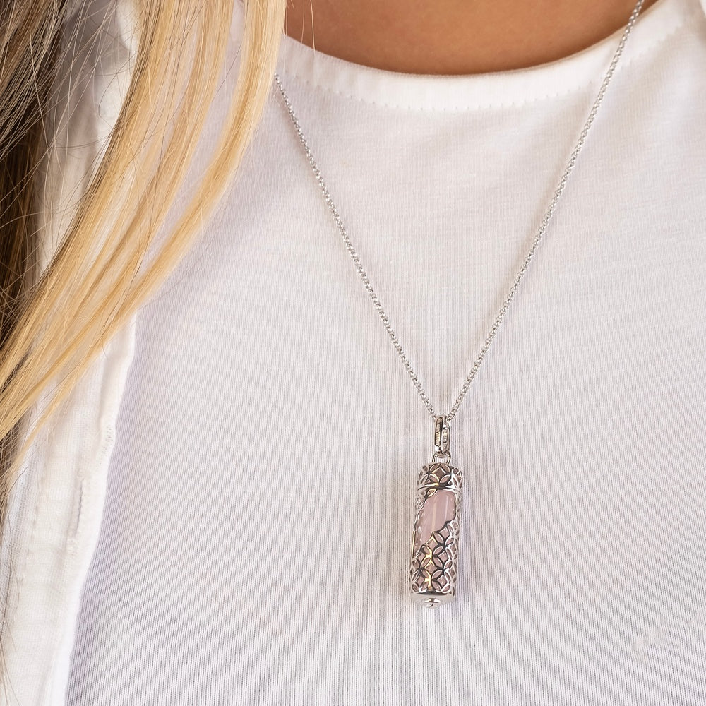 Dein persönlicher Kraftstein in einem filigranen Anhänger aus unserer Powerful Stone Kollektion. Unsere wunderschöne Engelsrufer Kette mit einem bezaubernden Schmuckgehäuse als Anhänger, präsentiert Dir hier einen Rosenquarz als "Stein der Liebe".