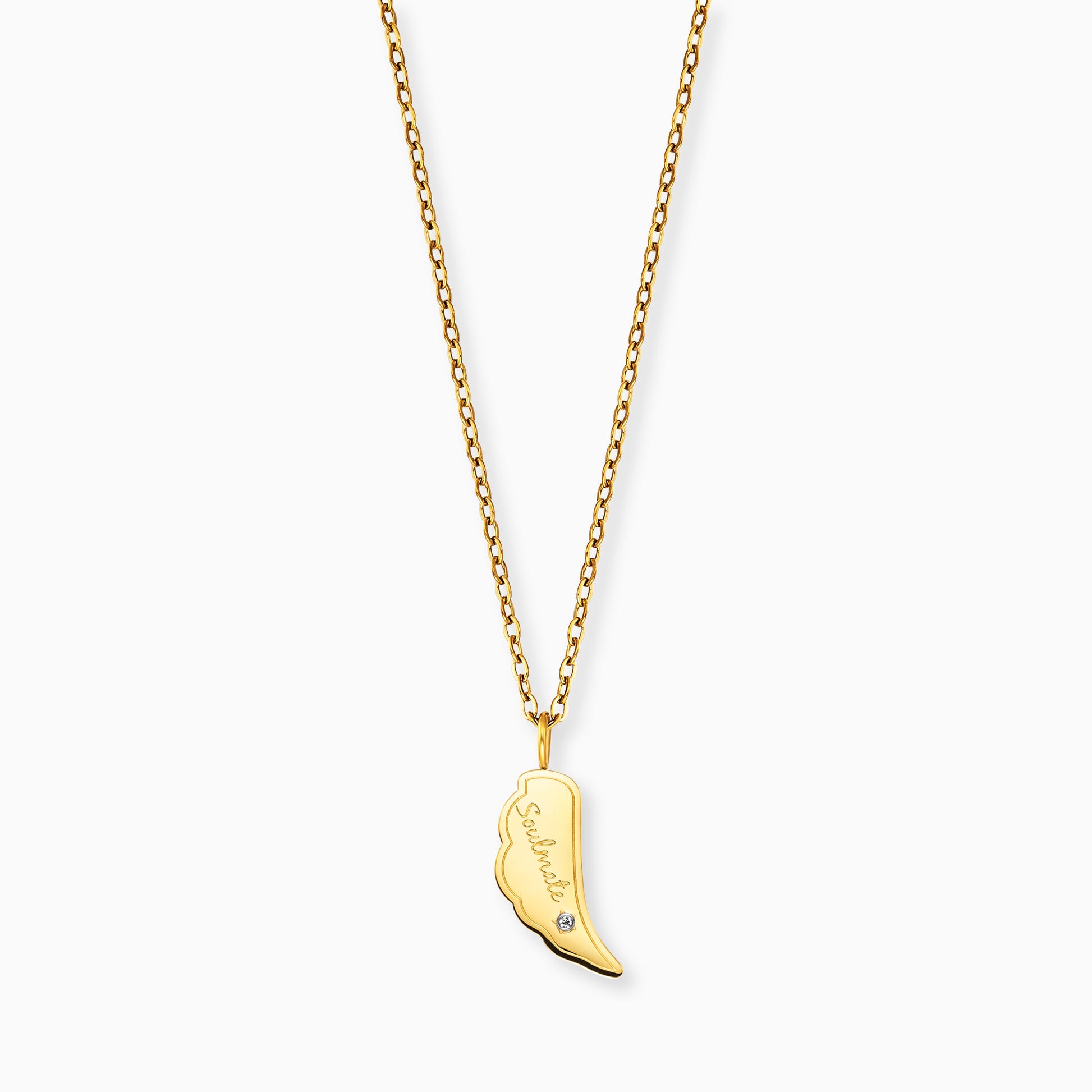 - Goldene Halskette mit graviertem Engelsflügel-Anhänger und Zirkonia Stein